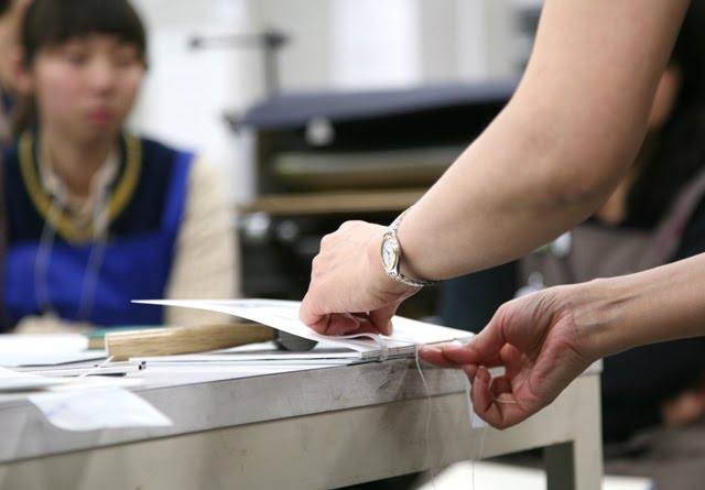 今日は手機械(ブックプレス:製本に使う平圧プレス機)を利用した