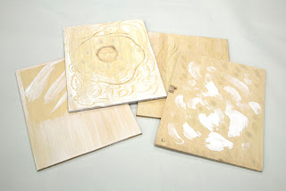 それにソリッドマーカー<強力な油性の性質でクレヨンのようなもので文房具屋さんなどで売ってます>で描画し、手描きの風合いに、プラス、彫刻刀で彫りの要素を加える事ができます。