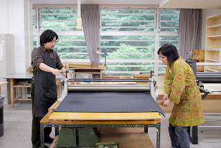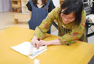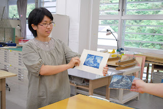 刷り方はリトグラフの油と水の反発生を利用します。(インクは油性)