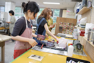 今日は水性凹版画のレクチャーの様子をお届けします。