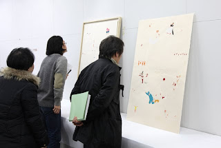 さっきの打ち合わせは撮影順番や名前や作品のキャプション(タイトル,サイズ,技法など)の確認などをしていました。