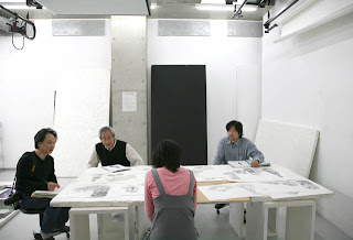 夏に実施されたAO入試に合格するとその後、課題提出と何度かのスクーリング(大学に来て授業を受ける)に参加してもらいます。これは第1回目のスクーリングの様子。↑学生に混じって授業を受けたり、課題作品を持参してもらい、面談してるところです。