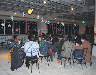 12/10、ハンガコースでは1回生主催による“新歓返し”<新入生歓迎コンパありがとうございました!お返しですの会>が行われました。2回生〜院生がおもてなしを受けるのです。@食堂2F