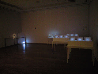 スポットライトやLED、プロジェクターを使った作品を展示。