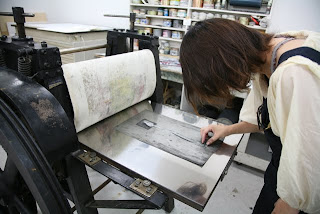 本作品に取りかかる前のドローイング、エスキース(全体の構図などを目的につくる試し描き)は*大切*(ポリマー版画)