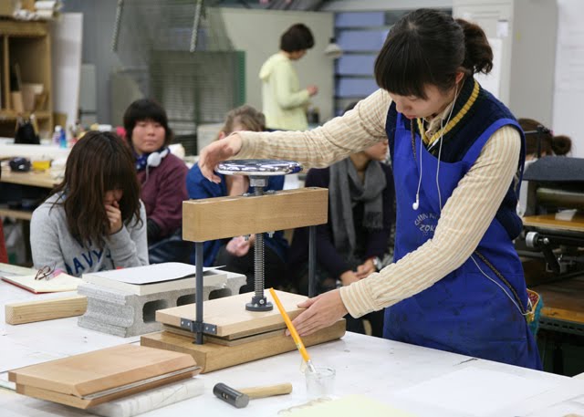 今日は手機械(ブックプレス:製本に使う平圧プレス機)を利用した