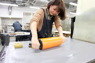 ベタ刷り。大きな色面のベタ(模様のない色面)はムラになりやすく難しい。。。
