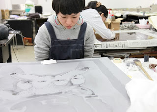 銅版で刷ったイメージを切り取り半立体(紙の部分とそこからイメージが立ち上がる感じ)のような作品を作ります。